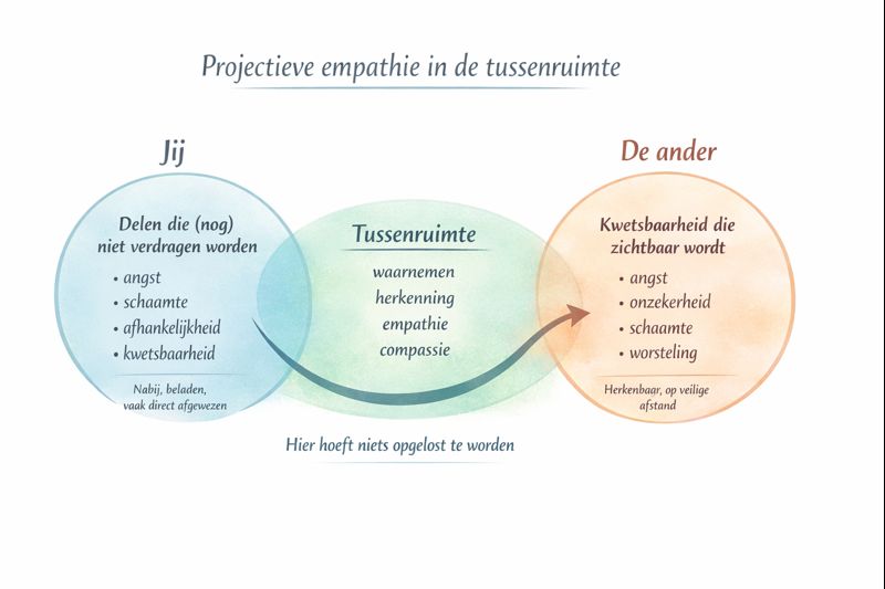 Een kernstap binnen projectieve empathie is dat wat je met compassie in de ander kunt zien, langzaam mag terugkeren naar jezelf.