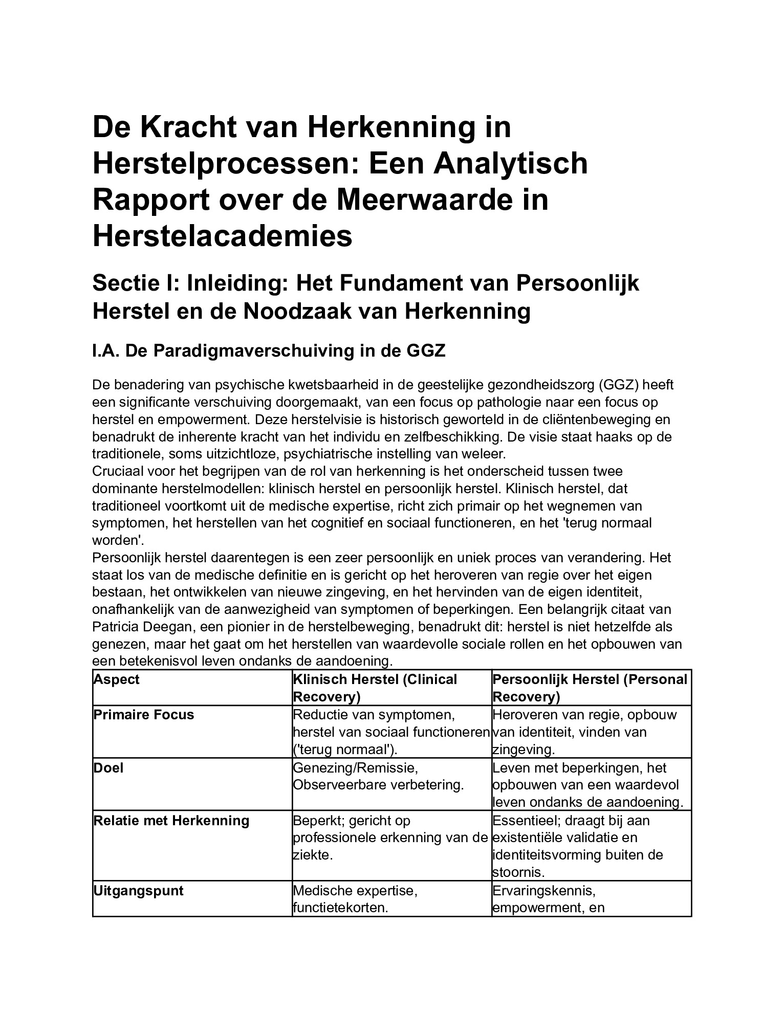 dominante herstelmodellen: klinisch herstel en persoonlijk herstel.